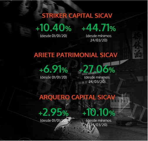 Hoy queremos dar la enhorabuena a los inversores en general, y a vosotros en particular. Aunque quizás no hayáis sido conscientes, en los peores momentos (en lo relacionado con vuestra inversión) habéis sido capaces de tomar la decisión más compleja, la de continuar y no dejar que el pánico influyera en vuestro criterio. Además de felicitaros, agradeceros una vez más la confianza depositada en nosotros, como asesores, os podemos asegurar que estamos plenamente orgullosos de haber recorrido este camino siempre con el respaldo que nos ha dado vuestra total confianza.