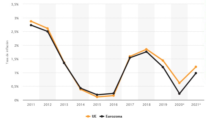 No queremos desilusionaros después de esta gran explicación pero si vemos la evolución reciente de la inflación en la Zona Euro, parece que la vuelta de la inflación será un asunto realmente complicado. Tened en cuenta que el objetivo marcado es del 2%, este gráfico de “STATISTA” lo muestra a la perfección.