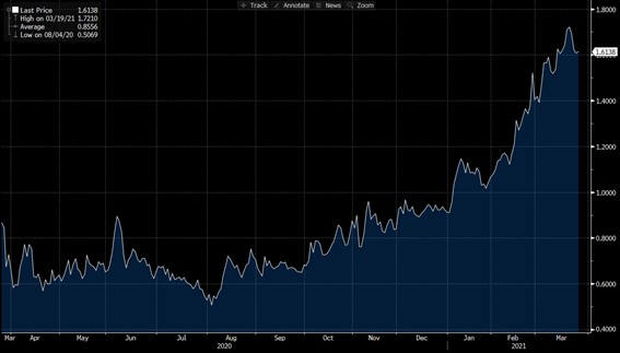A inicio de año, este bono ofrecia una rentabilidad en el mercado del 1% (rentabilidad para el inversor, tipo de interés a pagar para el emisor). Actualmente la rentabilidad ofrecida se encuentra en un 1.6%.