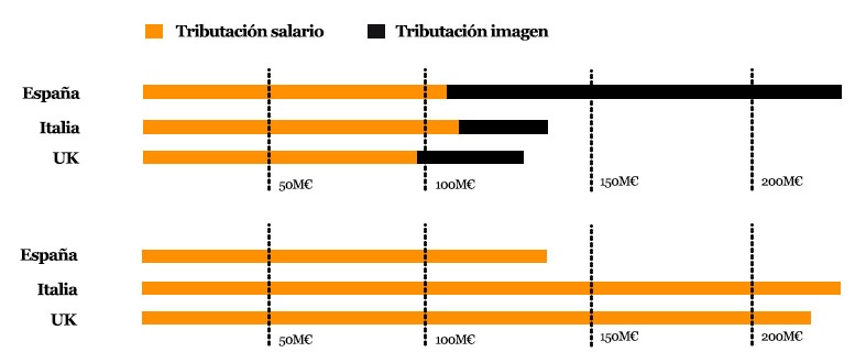 Al respecto, el diario El confidencial, analizó en una de sus publicaciones el efecto comparativo de la tributación de derechos de imagen entre esos países y España.