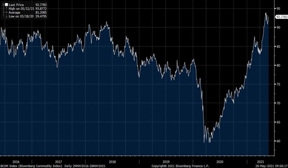 Evolución del precio del índice de Materias Primas (BBG Commodity Index):