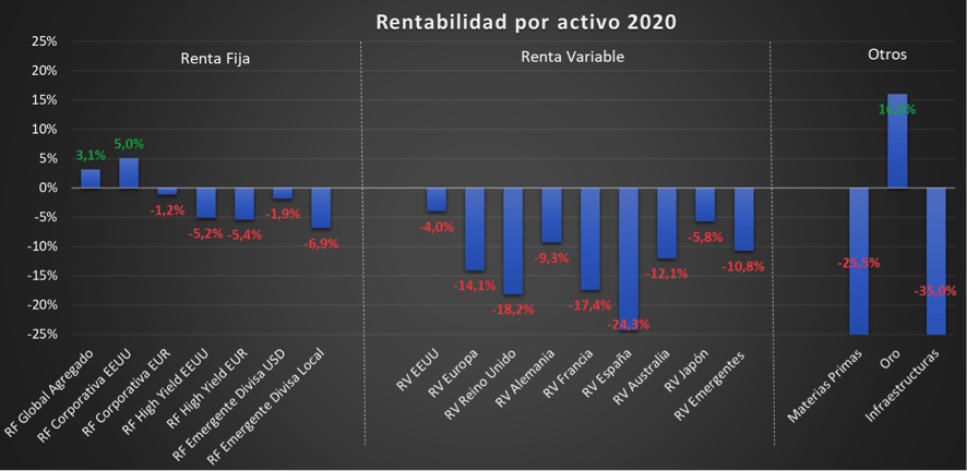 En este cuadro se refleja a la perfección el balance negativo del año aunque también vemos la recuperación desde caídas que llegaron a ser de valores del 30-40% dependiendo del activo.
