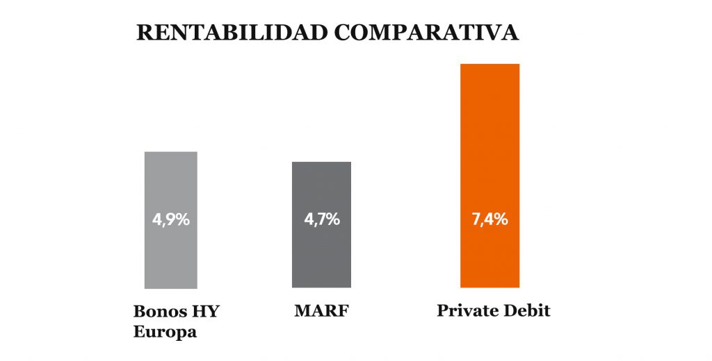 • Private Debt: inversión en activos de crédito/deuda con entidades no financieras que no están vinculadas o cotizadas a un mercado. Engloba una amplia tipología de productos aunque en su mayoría podría resumirse como préstamos a empresas privadas con condiciones negociadas entre ambas partes.